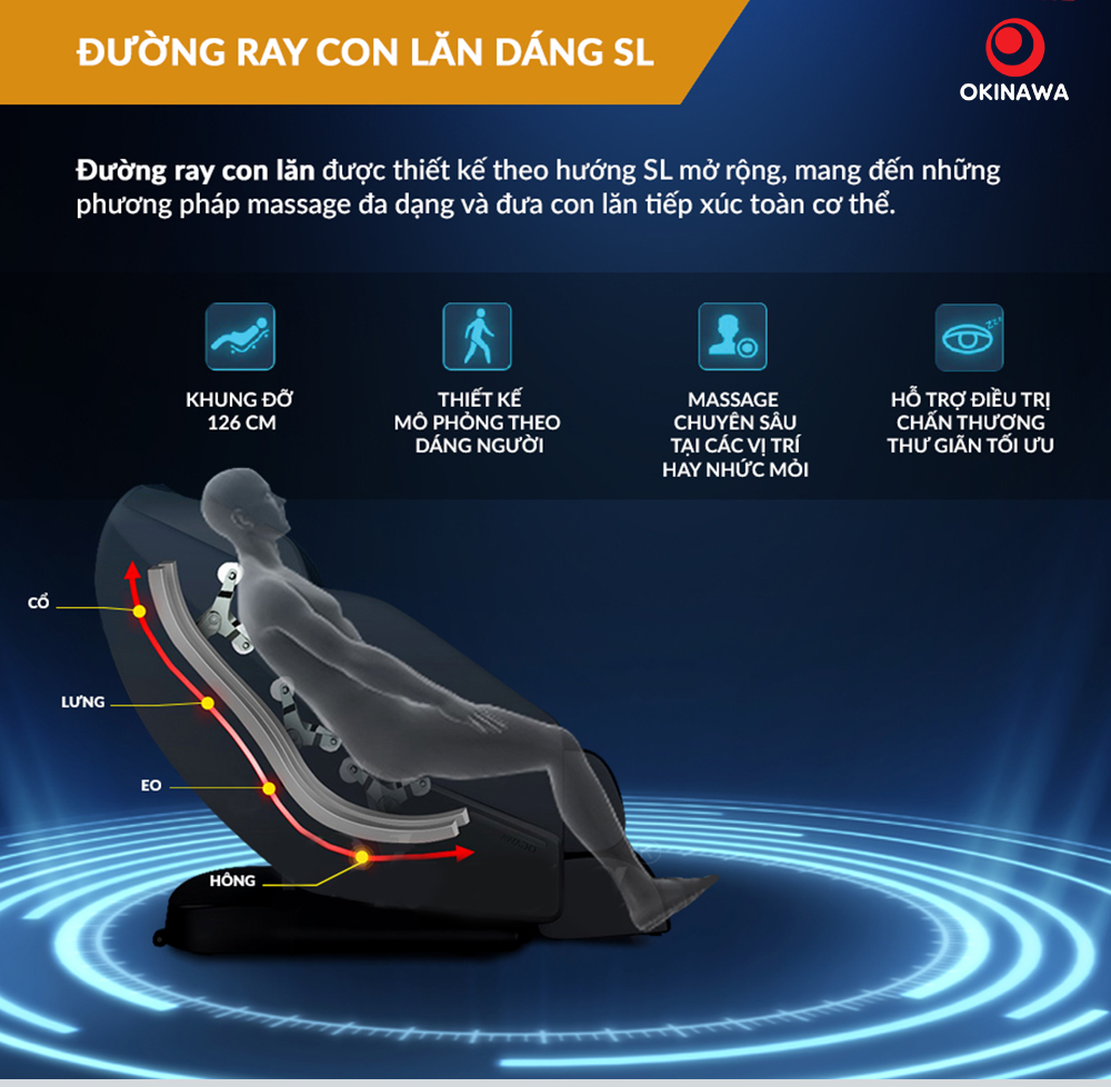 Còn nếu bạn lựa chọn ghế Massage OKINAWA OS – 335 để sử dụng thì chắc chắn bạn sẽ được trải nghiệm hệ thống công nghệ tiến tiến kết hợp cùng với đường ray con lăn theo kiểu dáng SL mở rộng. Nên đảm bảo sẽ mang đến cho người dùng được trải nghiệm qua các phương pháp massage vô cùng đa dạng. Chắc chắn các cơn đau nhức trên cơ thể của người dùng sẽ được loại bỏ hoàn toàn và mang đến một tinh thần tốt nhất.
