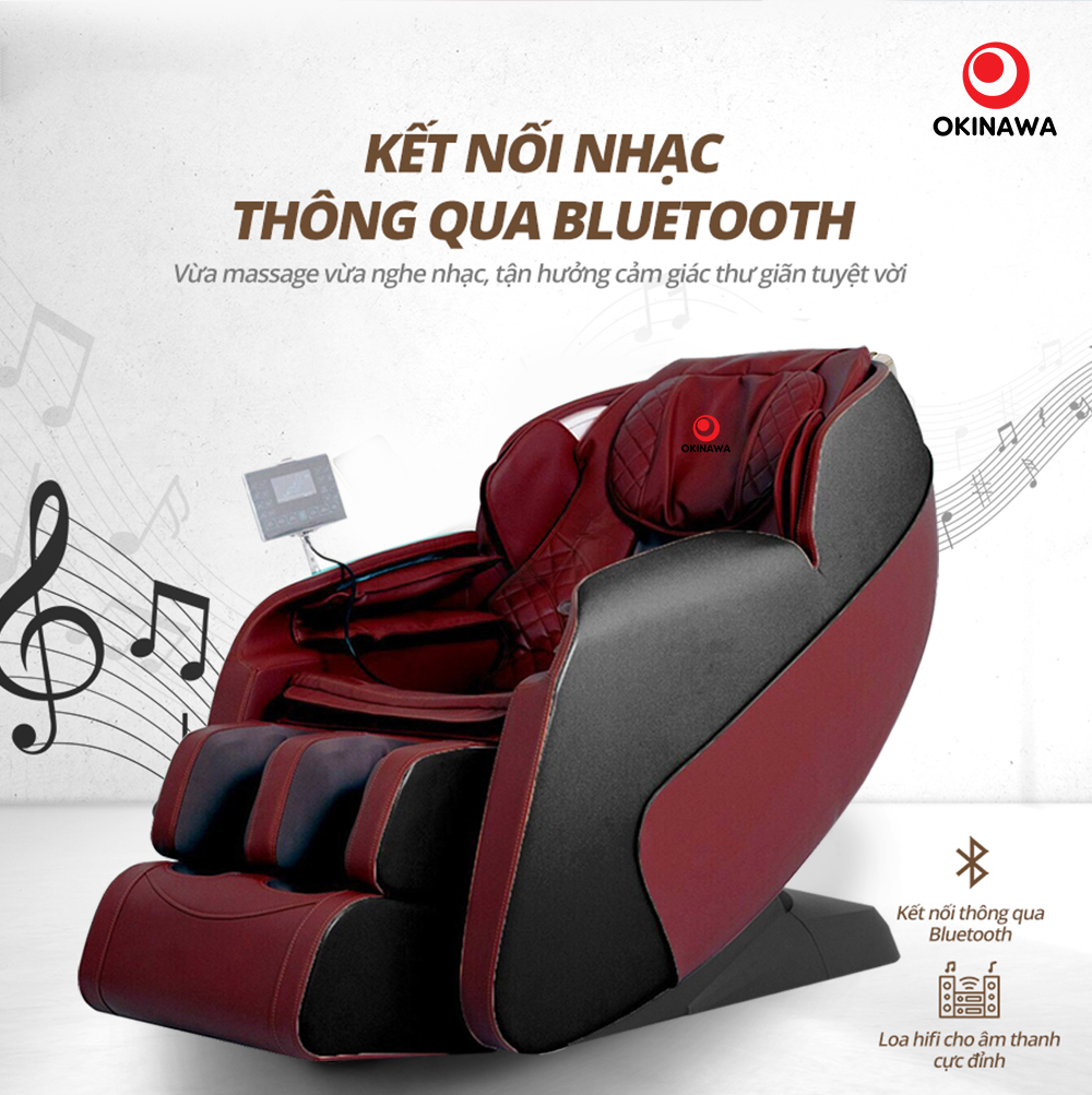 Nếu bạn lựa chọn ghế Massage OKINAWA OS – 335 để sử dụng thì bạn không còn phải lo lắng bất cứ một vấn đề gì hết. Ghế massage không chỉ có khả năng massage thông thường mà ghế còn được trang bị thêm hệ thống kết nối nhạc thông qua Bluetooth, người dùng có thể vừa thư giãn vừa mở những bài hát mà bạn thích trong quá trình mát xa.