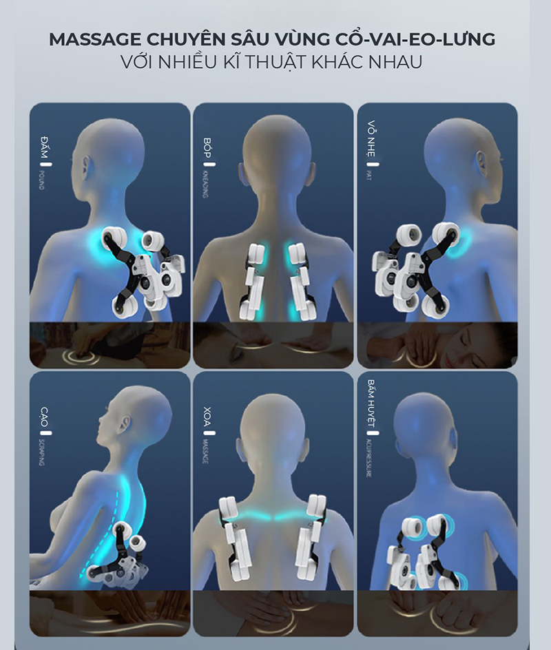 | Vị trí massage | Đầu,Cổ, Vai, Lưng, Eo, Đùi, Tay, Chân |